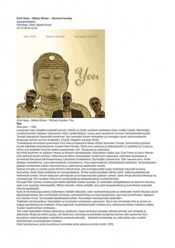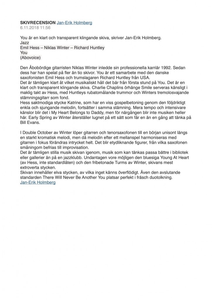 You, Skivrecension ;Hbl 2018.